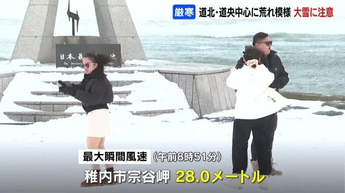 風も強く、稚内の宗谷岬では午前9時前に、28メートルの最大瞬間風速を観測しました。