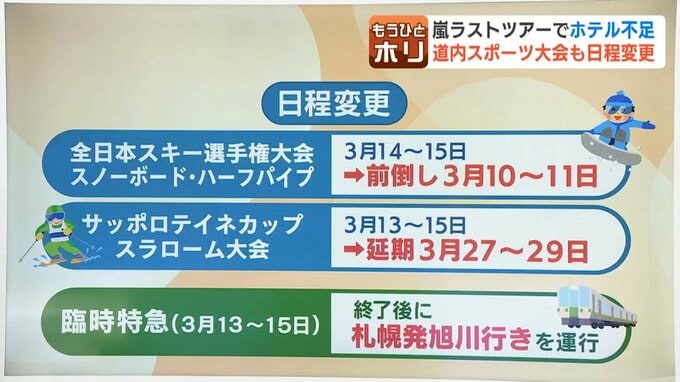 北海道内でも、関係者の宿泊場所が確保できず、日程が変わったスポーツの大会もあります。
