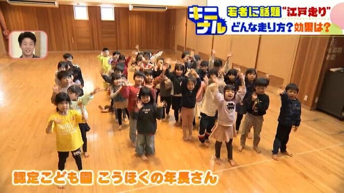 さっそく江戸走りの形と注意点をしっかり説明して、年長さんのみんなと練習!