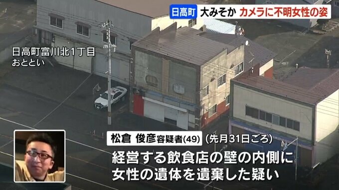 日高町の松倉俊彦容疑者(49)は、経営する飲食店の壁の内側に女性の遺体を遺棄した疑いが持たれています。