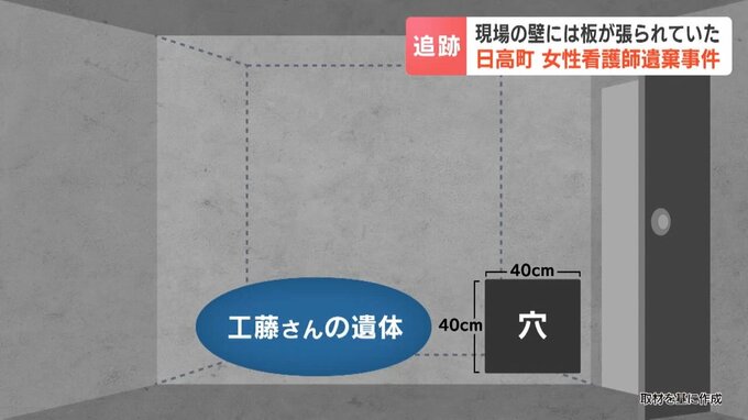 捜査員が、この板をはがすと、縦、横40センチほどの穴が空いていて、その奥の1畳ほどのスペースで工藤さんの遺体は、見つかりました。