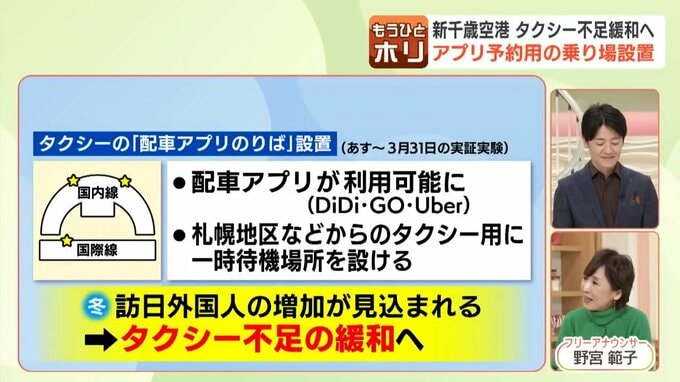 これによって、どういう効果が見込まれるかというと、訪日客の増加が見込まれる冬期間のタクシー不足の緩和が期待されています。