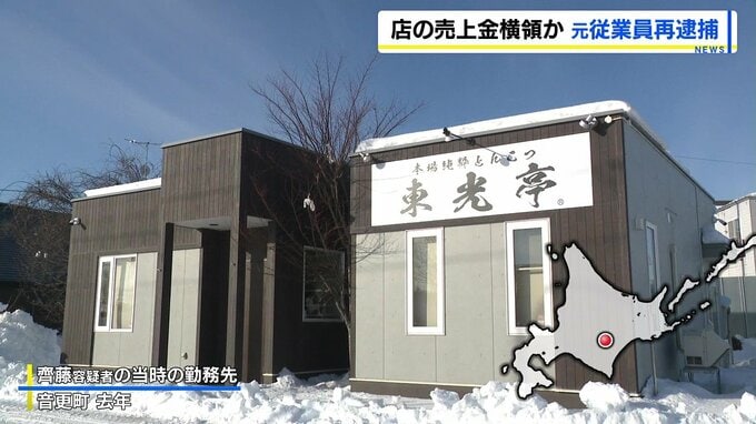 北海道音更町のラーメン店から、売上金など約30万円を横領した疑いで元従業員の40歳の男が再逮捕されました。