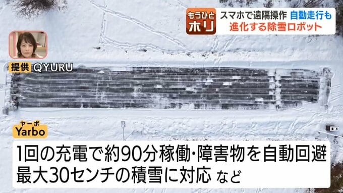 バッテリー式で、冬場でも1回の充電で、約90分稼働でき、自動で障害物を回避。最大30センチの積雪にも対応します。