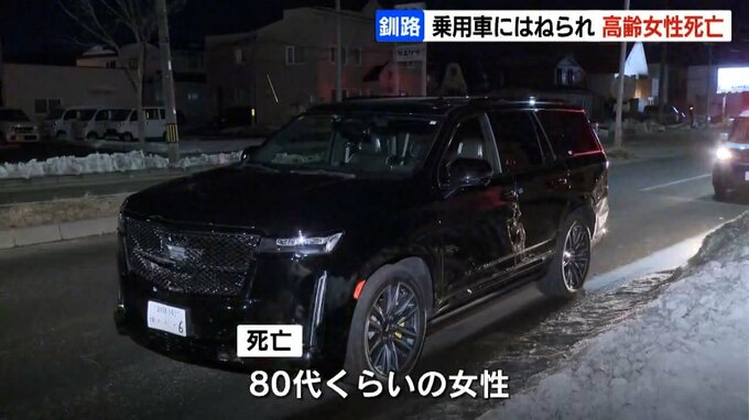 高齢女性が車にはねられ死亡「人をひいた、息をしていない」と自ら通報の59歳男を過失運転傷害容疑で逮捕「車道を歩いていた歩行者に気付くのが遅れた」北海道釧路市 2026年1月18日(日) 11:53 国内 18日夜、北海道釧路市の交差点で80代くらいの女性が乗用車にはねられ、死亡しました。18日午後6時すぎ、釧路市光陽町の道道と市道が交わる交差点で、道道を市街地から昭和方向に走っていた乗用車が女性をはねまし…