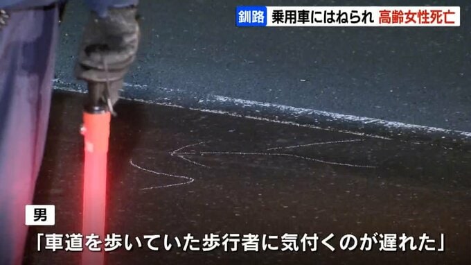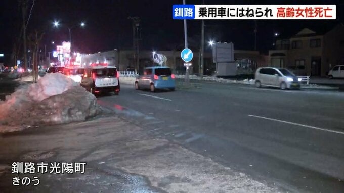 18日夜、北海道釧路市の交差点で80代くらいの女性が乗用車にはねられ、死亡しました。