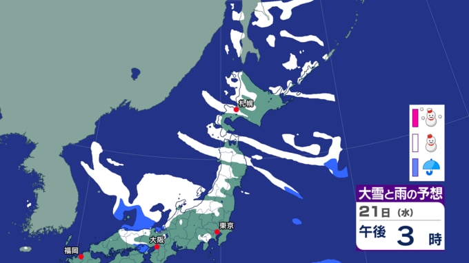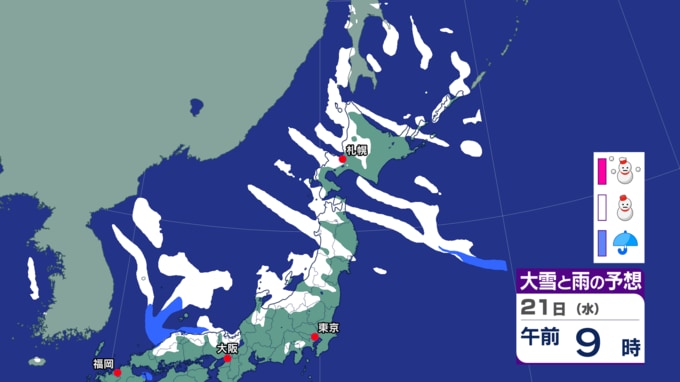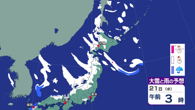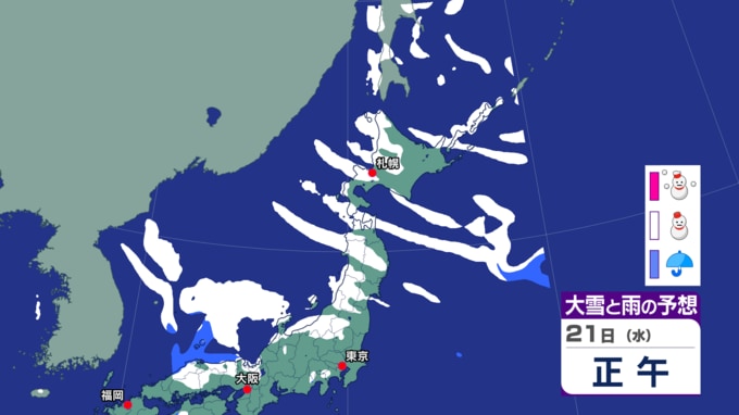 また、普段雪の少ない太平洋側でも大雪となる所がある見込みです。