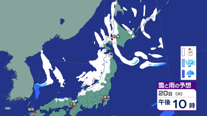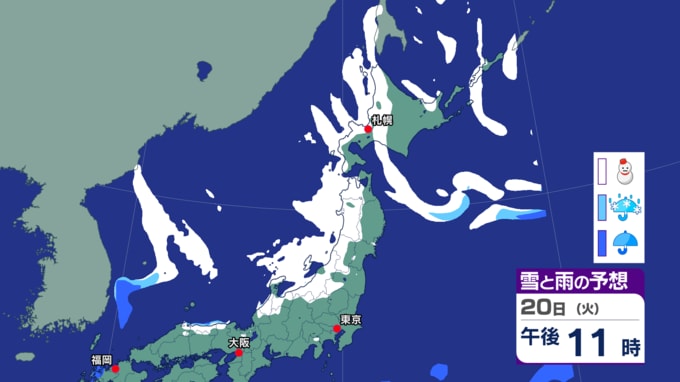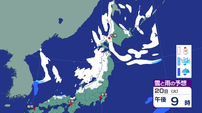 【気象解説】寒波の影響で北海道でも警報級の大雪に 21日にかけて最大50センチの降雪予想 立ち往生に備えを 水道凍結にも注意 2026年1月20日(火) 20:18 国内 天気 児玉晃 雪と雨の予想シミュレーション(20日夕方~) ◆HBCウエザーセンター 児玉晃 気象予報士