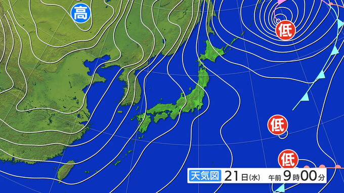 日本付近は25日ごろにかけて、強い冬型の気圧配置が続く予想です。