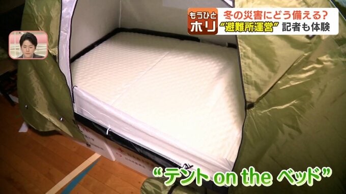 さらに完成したベッドの上に1人用のテントを設置すれば、保温効果が期待でき、