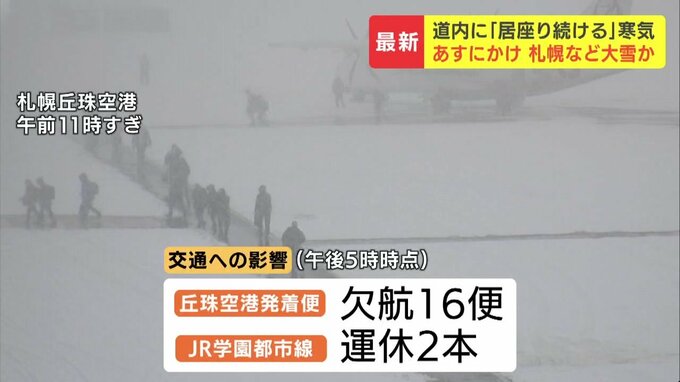 空の便は丘珠空港を発着するあわせて16便が欠航。