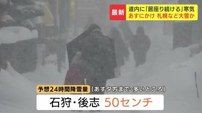 22日夕方までの24時間に石狩地方や後志地方の多いところで50センチの雪が降ると予想されていて、交通障害などに十分な注意が必要です。