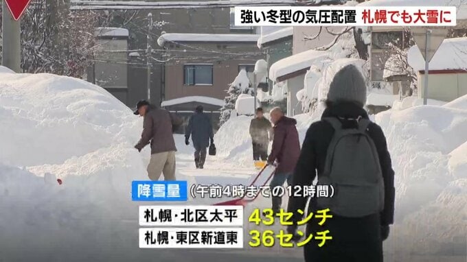 札幌市北区太平では、22日午前4時までの12時間に43センチ、東区の新道東でも36センチの雪が降りました。
