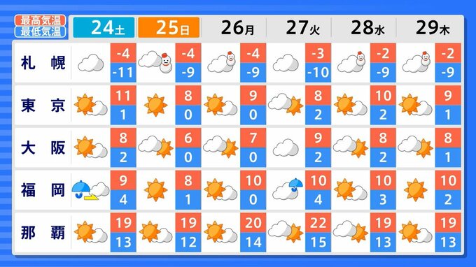 25日ごろにかけて強い冬型の気圧配置が続き、北日本から西日本の日本海側を中心に、山沿いや山地だけではなく平地でも大雪となる所がありますので、大雪・路面凍結による交通障害に注意・警戒してください。近畿地方では引き続き22日は、北陸地方と東海地方では24日にかけて大雪に警戒してください。