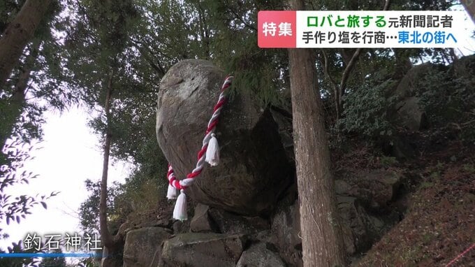 石巻市の釣石神社に立ち寄り、高田さんも休憩タイムです。境内の石段横には、神社の名前の由来にもなったという“落ちそうで落ちない巨石”があります。過去の地震にも耐え、東日本大震災でも動くことがなかった巨石には、多くの受験生が願いを託しています。