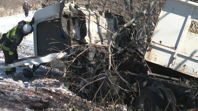 R北海道や警察によりますと、トラックの運転手が意識と呼吸がない状態で病院に搬送されました。