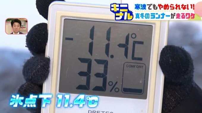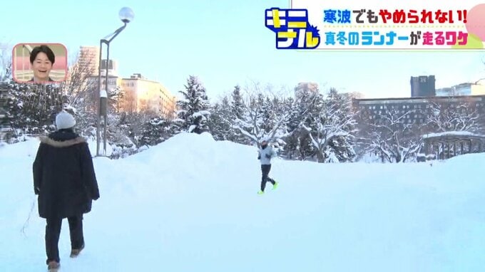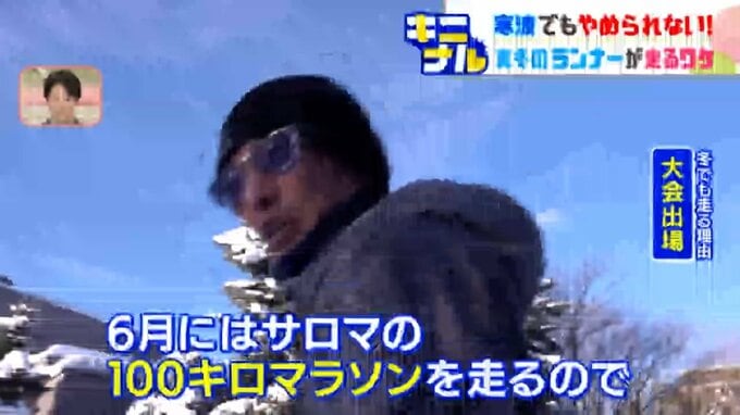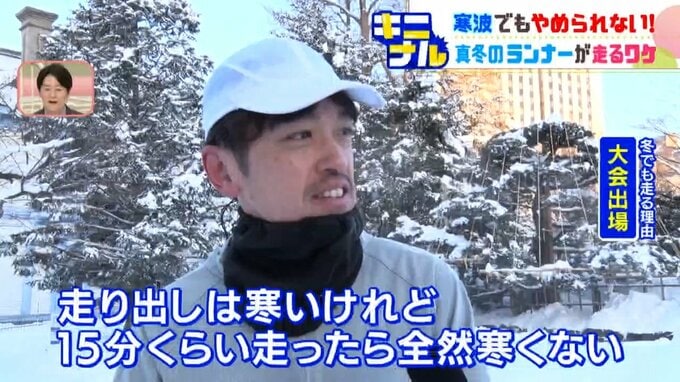 「(氷点下10度以下ですがそれでも走る?)そうですね、走り出しは寒いけれど15分くらい走ったらいま全然寒くない、去年の北海道マラソンから復帰してそれから半年くらい(続けている)」