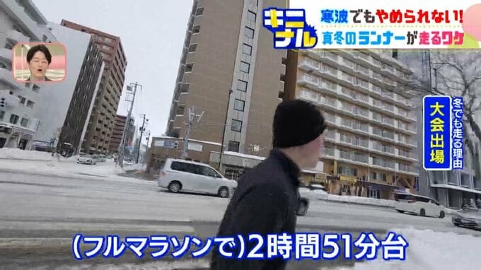 札幌市内でも見かける「市民ランナー」 今季最強最長寒波が到来した酷寒の日も…走っている人が、いた! 寒さにも大雪にも負けずに走る理由とは? 2026年1月31日(土) 07:00 国内 冬になると走り始める!? <午後2時、北海道大学前> 男性「(フルマラソンのタイムは?)2時間51分台、11月や12月は全然走らない、1月になってまた走り始める(ギブアップ、がんばってください)」