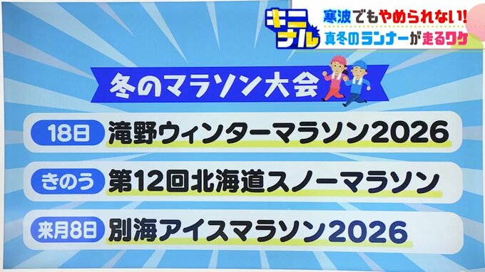 18日には札幌の滝野、26日の北海道スノーマラソン、2月には別海町でアイスマラソンがあります。