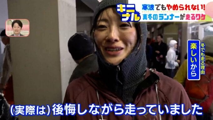 「水も凍っているんですよ、雪を楽しむマラソンでした、(実際は)普通に後悔しながら走っていました、ずっと」