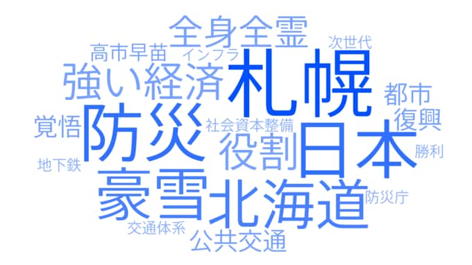 ※AIを使って「第一声」のキーワードを使用頻度で分析しました。候補が重要視しているとみられる文字が大きく太く表示されます。