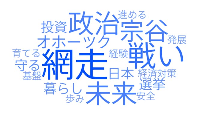 ※AIを使って「第一声」のキーワードを使用頻度で分析しました。候補が重要視しているとみられる文字が大きく太く表示されます。