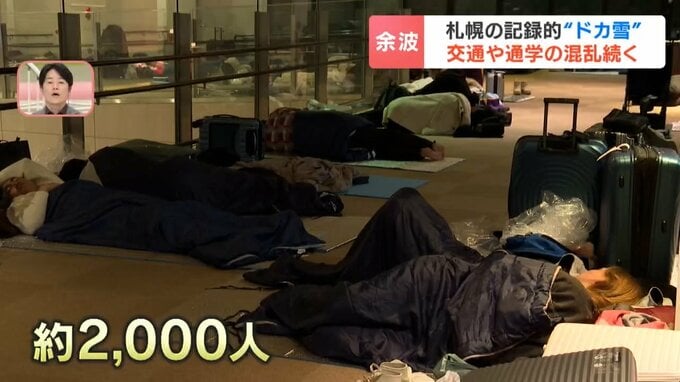 大雪で交通機関の運休が相次ぎ、27日も、約2000人が空港で一夜を明かしました。
