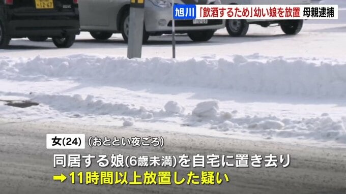 北海道旭川市で、幼い娘を自宅に放置したまま長時間外出した疑いで、24歳の母親が逮捕されました。
