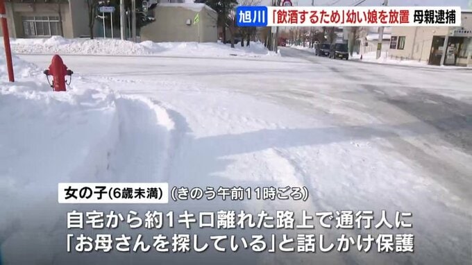 発見当時の旭川は気温がマイナス6℃近くと厳しい寒さでしたが、女の子はダウンジャケットを着てスノーブーツを履き、けがはないということです。