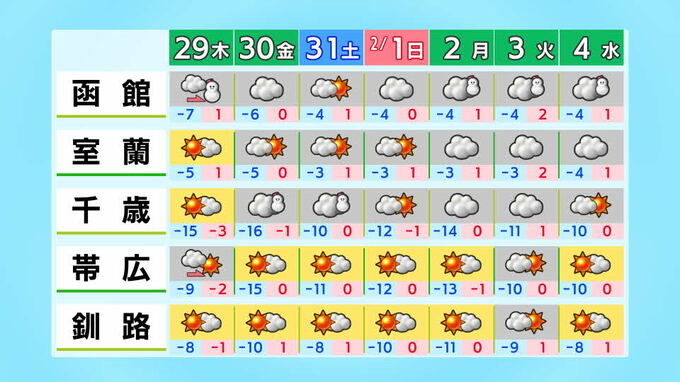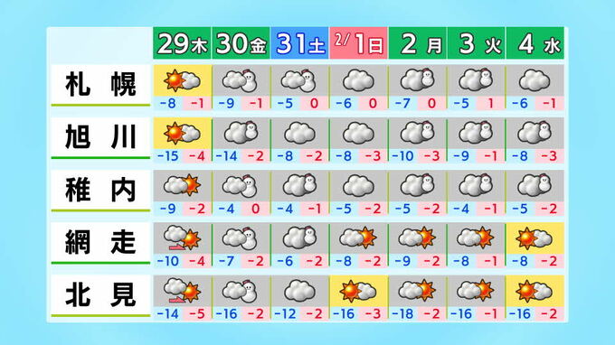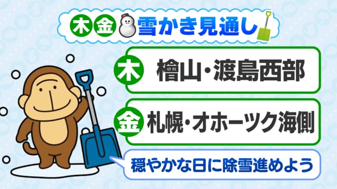 【解説】1月最後の金曜日は大雪に警戒 強烈寒波の影響で北陸で一晩70センチの積雪予想 札幌は30日にかけ再び雪かき必要に 2026年1月28日(水) 22:32 国内 伊藤真梨子 30日は札幌で雪が降りやすく…再び雪かき必要 北海道では、29日は渡島半島周辺で午後から雪が降るほかは、冬としては穏やかな天気の所が多く、これまでの雪を少しずつ除雪しておくとよいでしょう。 ◆道内の天気(29日)(30日) 30日金曜日は札幌で雪が降りやすくなり、再び雪かきが必要になります。 先日の大雪の影響が残っているため、なだれや屋根からの落雪など、雪の事故には気を付けて時間にゆとりを持ってお過ごしください。 ◆全国の週間天気 ◆HBCウエザーセンター 伊藤真梨子気象予報士