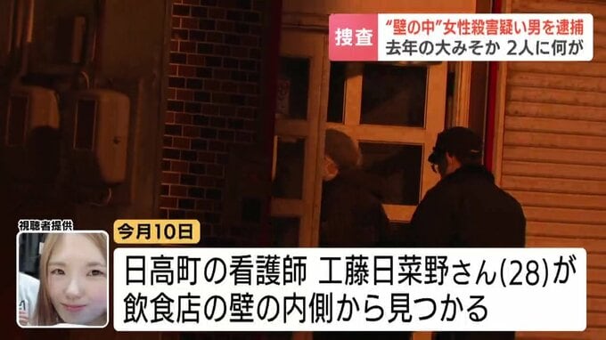 この事件は、1月10日、日高町の看護師・工藤日菜野さん(28)の遺体が飲食店の壁の内側から見つかり、知人で店を経営する松倉俊彦容疑者(49)が遺体を遺棄した疑いで逮捕されました。