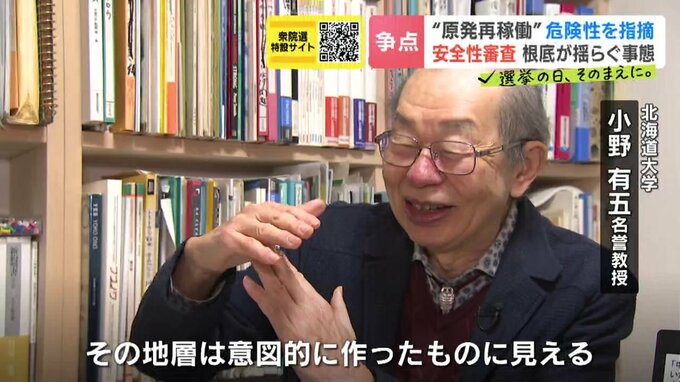 自ら泊原発近くの地層を調べ、危険性を指摘し続ける北海道大学の小野有五名誉教授です。