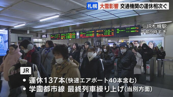 一方、JR北海道は、3日も快速エアポート40本を含む137本の列車の運休を決めたほか、当別方面の最終列車を繰り上げます。