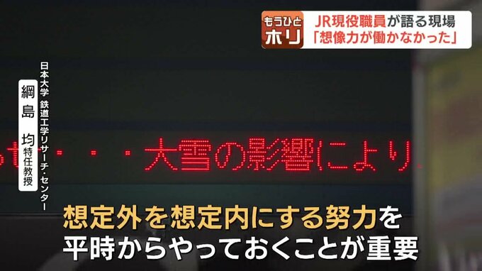 私も先週、新千歳空港で足止めされて、そのまま空港内の取材に入りましたが、利用者の皆さんは、この大雪では仕方がないとあきらめていた人がほとんどでした。 ただ一方で、JRの情報伝達の不手際や、代替バスを出そう、何とかしようという姿勢も、空港では感じられず、利用者に親身でなかったと思いました。
