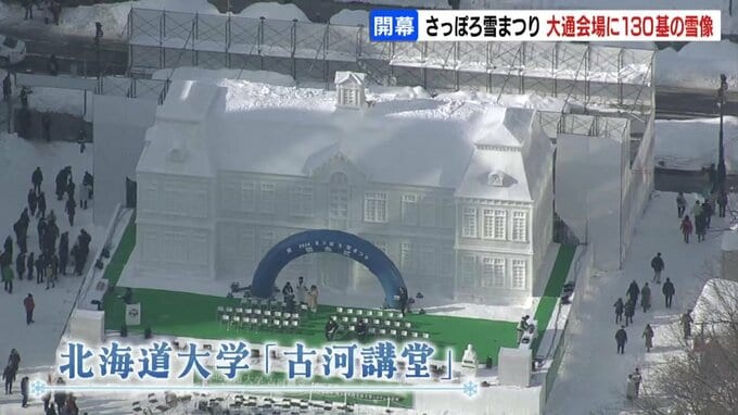 大通7丁目会場の「HBC広場」では、国の登録有形文化財にも指定されている北海道大学「古河講堂」の大雪像が完成し、引き渡し式が行われました。