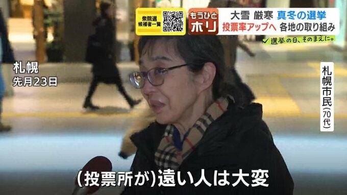 「(雪で)道が悪いし、歩くのが大変で、私は(投票所が)近いからいいが、(投票所が)遠い人は大変」