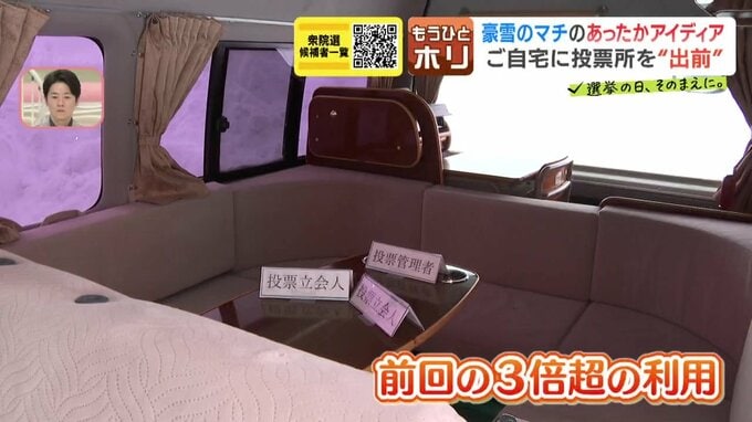 道内有数の豪雪地帯で、投票所に行くことが困難な有権者も多い中、この移動投票所が活躍しています。前回の3倍を超える有権者が、ここで票を投じました。