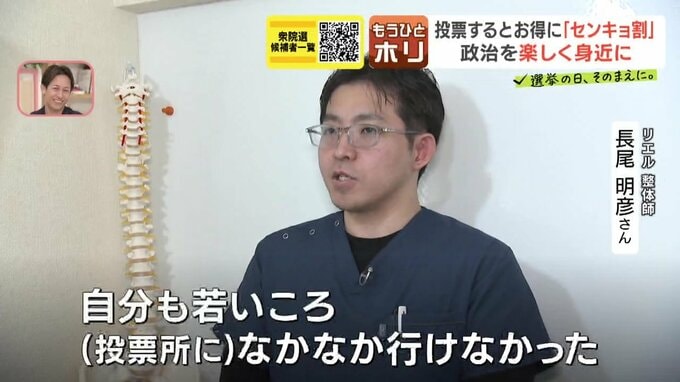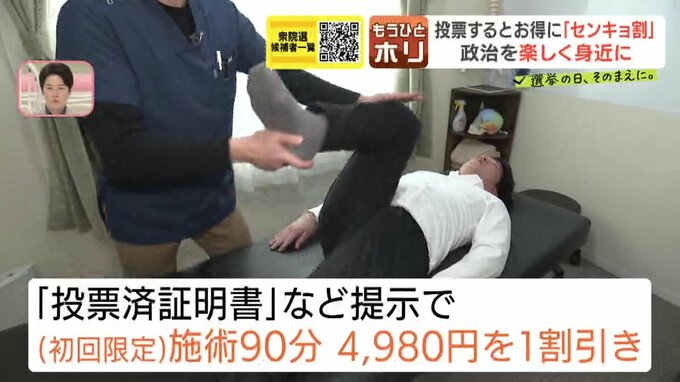 「こちらの整体サロンでは、投票した証明を持ってくると、施術を割り引き料金で受けることができるんです」