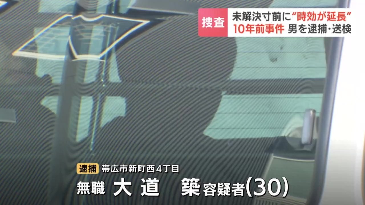 「大道容疑者を乗せた車が、いま帯広警察署を出発します」