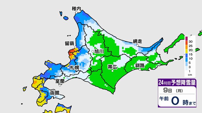 札幌でも8日(日)午後~9日(月)朝にかけて雪が強まり、20センチ前後のまとまった雪の降る可能性があります。