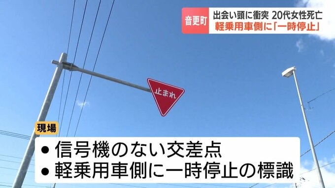 現場は、信号のない交差点で、軽乗用車側に一時停止の標識がありました。
