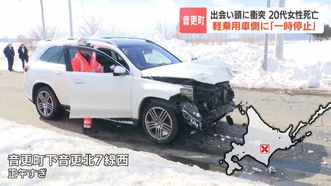 12日午前、北海道音更町で乗用車と軽乗用車が出会い頭に衝突し、軽乗用車を運転していた20代の女性が意識不明の重体です。