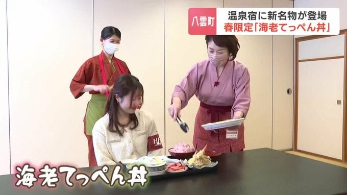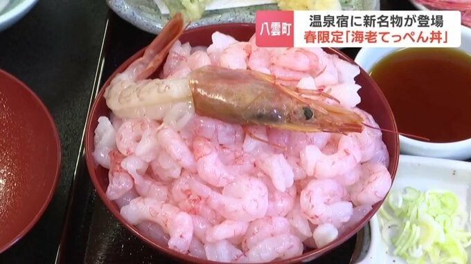 おぼこ荘では、毎年この時期限定で「海老づくし料理」を提供していて、2026年は新たに「海老てっぺん丼」がメニューに加わりました。
