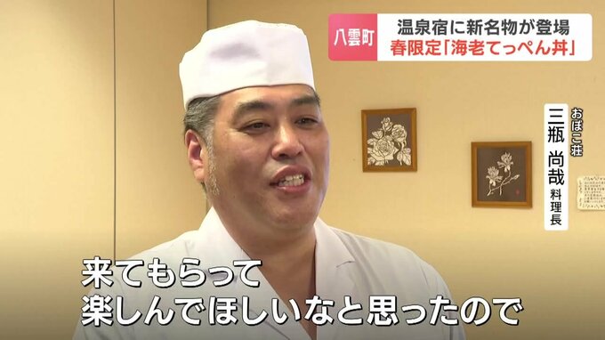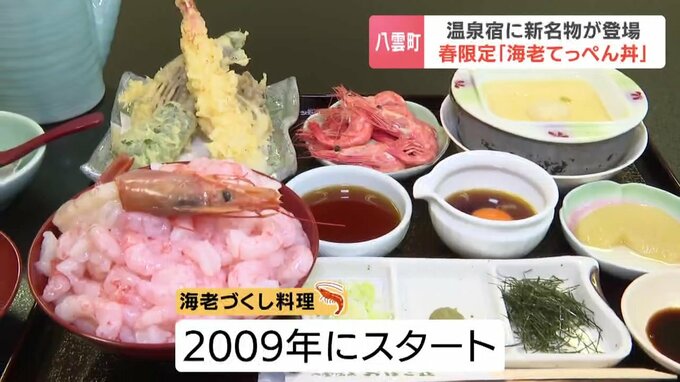 「海老づくし料理」は、3月29日までの期間限定で宿泊客には金土日の3日間、日帰り客には土日祝日に提供されます。