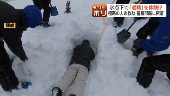 雪崩に巻き込まれると、どのような状況になるのか。救助隊の監視のもと、記者が体験してみました。