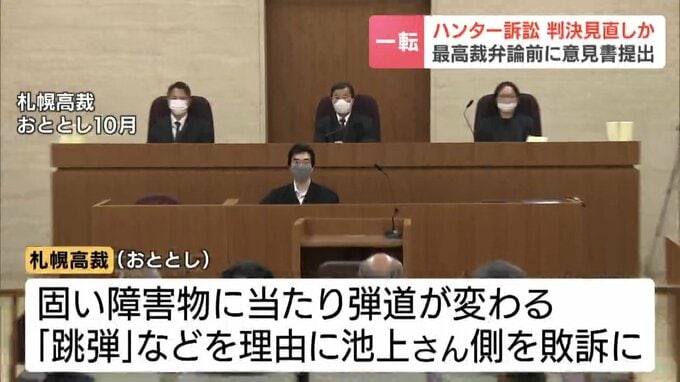 2024年、札幌高裁は固い障害物に当たって弾道が変わる「跳弾(ちょうだん)」などを理由に池上さん側を敗訴としました。