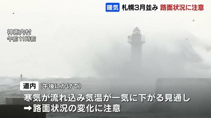 23日朝の道内は、3月から4月並みの暖かさとなり、路面状況の変化などに注意が必要です。