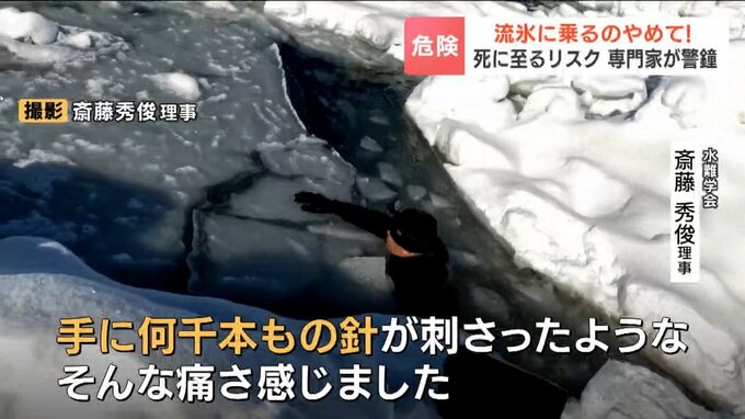 さらに危険なのが海水温です。斎藤理事は去年、自ら流氷ツアーに参加し、その冷たさを体感しました。