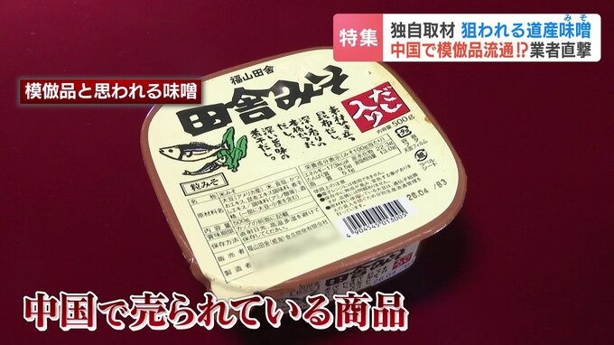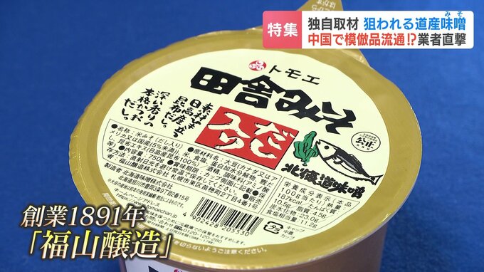 札幌の「福山醸造」と似ているが、名前が違う。食品表示には北海道で製造したという表記もない。こういった偽物が中国のスーパーやネット通販で多く出回っているという。