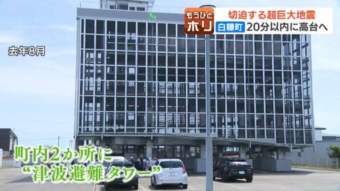 マチは「20分以内の高台避難」を目標に掲げ、去年、およそ18億6000万円を投じ、町内2か所に津波避難タワーを整備。訓練などを通じて町民の防災意識を高めています。